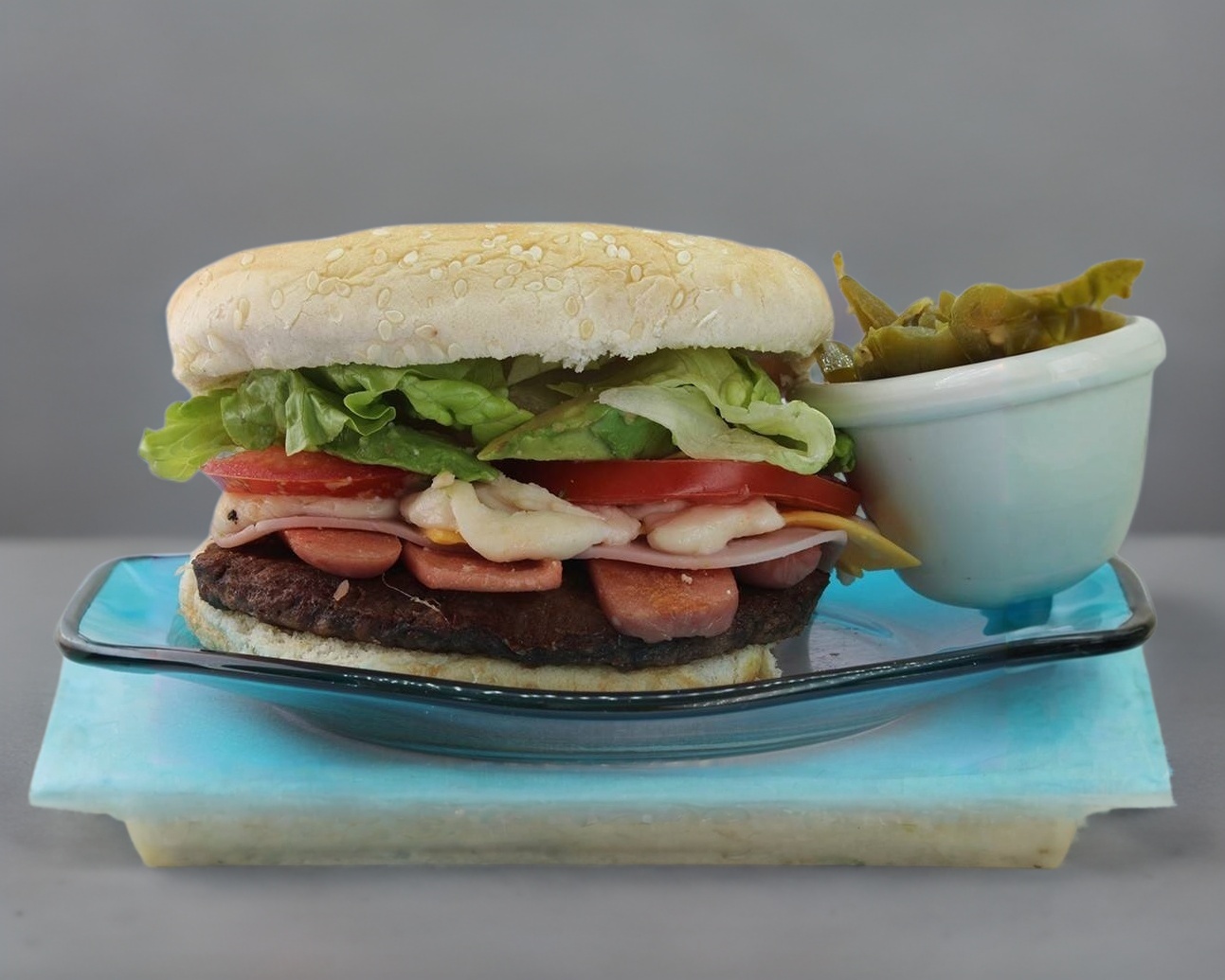 Preparada con salchicha,jamón, queso amarillo, queso oaxaca, lechuga, jitomate, catsup, mostaza y picante.