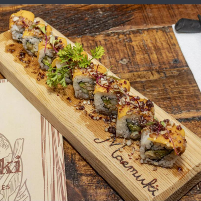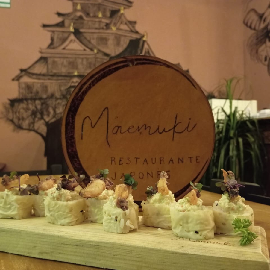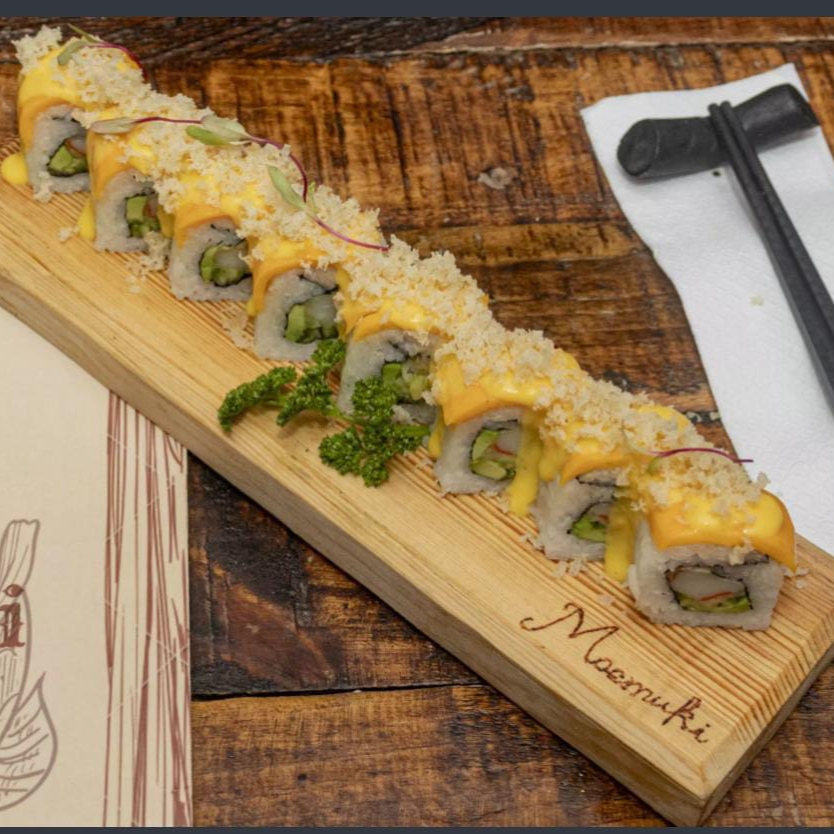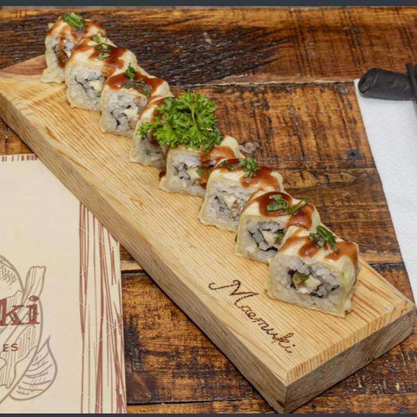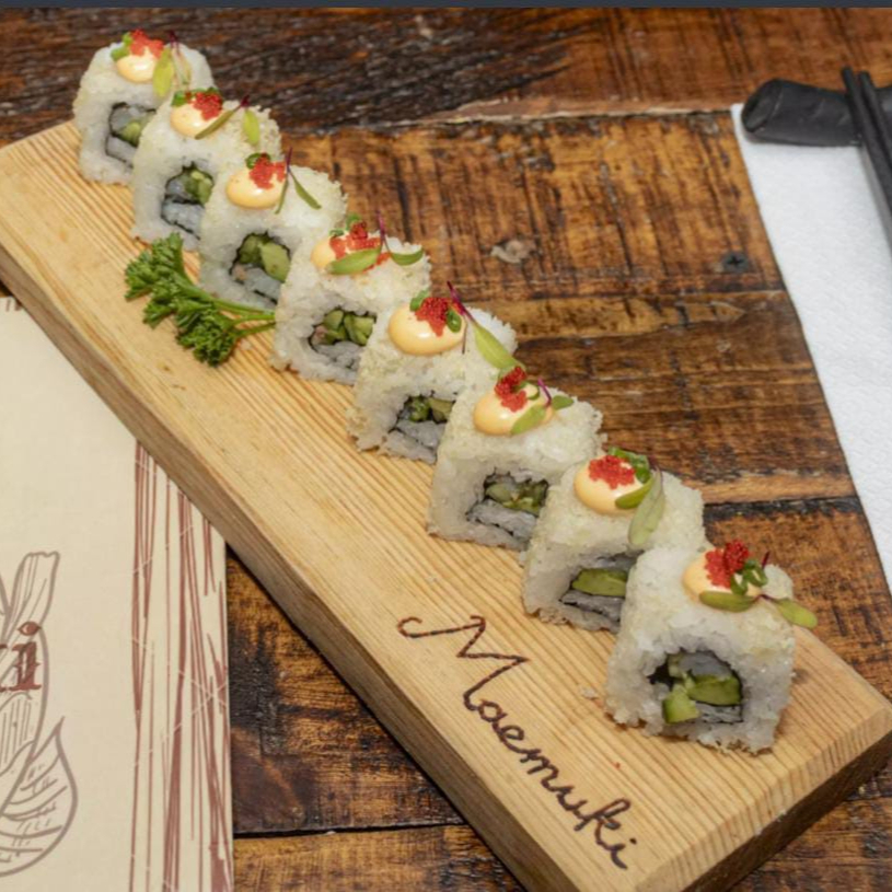 Forrado de fritura, mayonesa spicy, tobiko, camarón, aguacate y pepino.