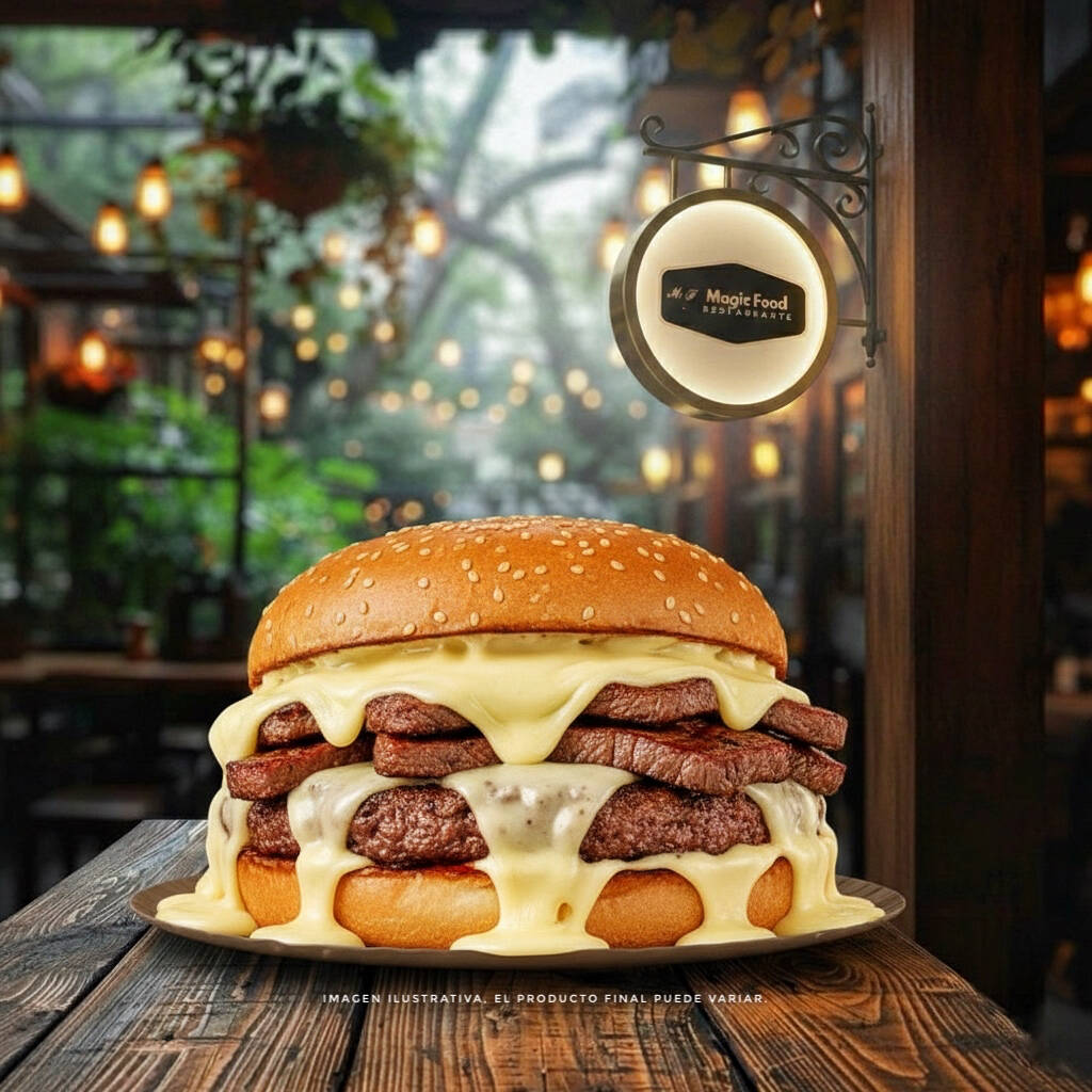Doble carne de la hamburguesa gruesa y doble de cada ingrediente.