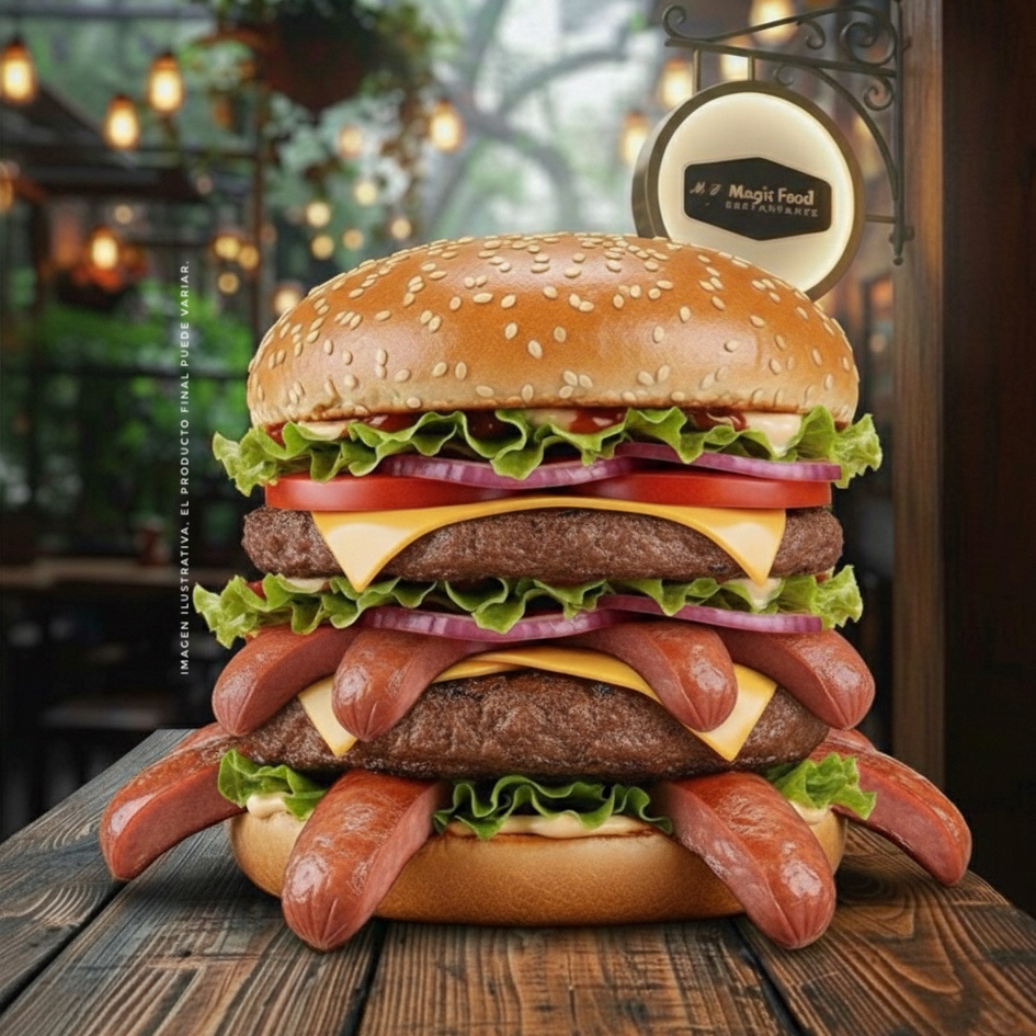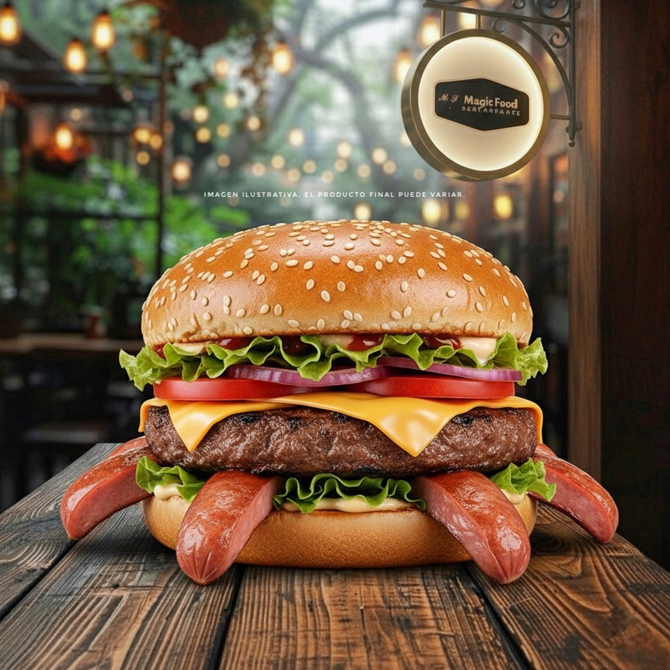 Hamburguesa con salchichas opciones a eligir (clásica)(BBQ)(Mango-Habanero)