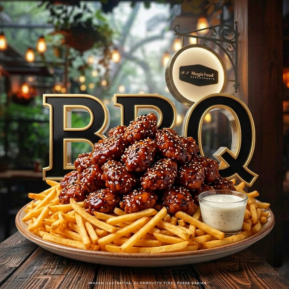 Deliciosos Boneless cubiertos de salsa BBQ (ajonjolí opcional)