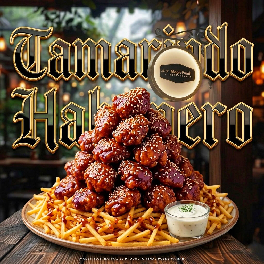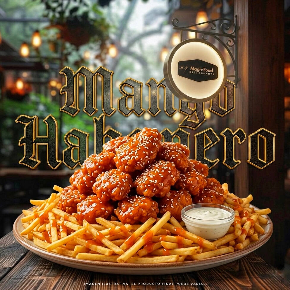 Deliciosos Boneless cubiertos de Salsa Mango Habanero (ajonjolí opcional)