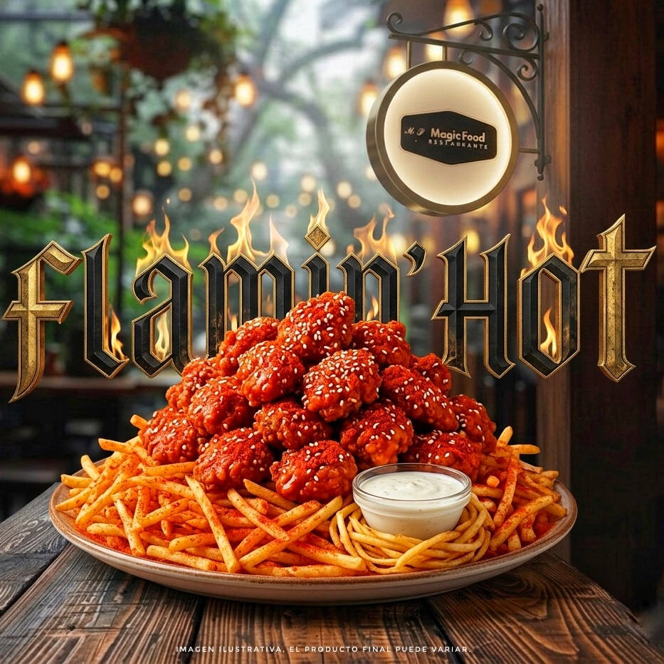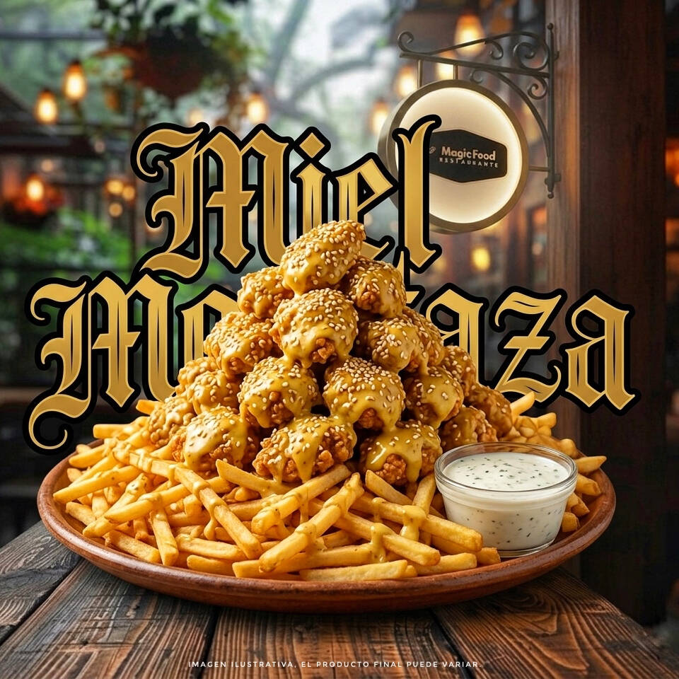 Boneless + misma cantidad seleccionada de papas frita, sazonadas conforme al sabor elegido.