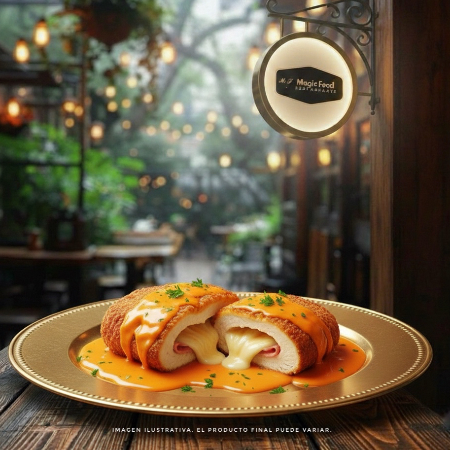 PECHUGA CORDÓN BLUE en salsa Bechamel-chipotle.
