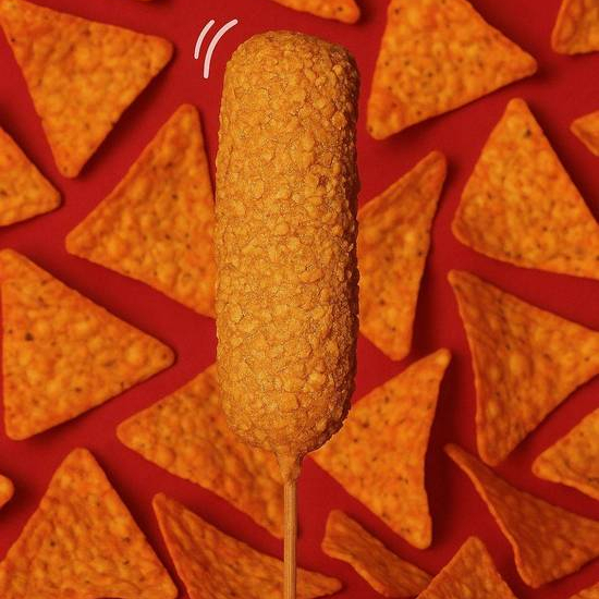 Deliciosa Banderilla de salchicha con queso manchego empanizada con Doritos Nacho
