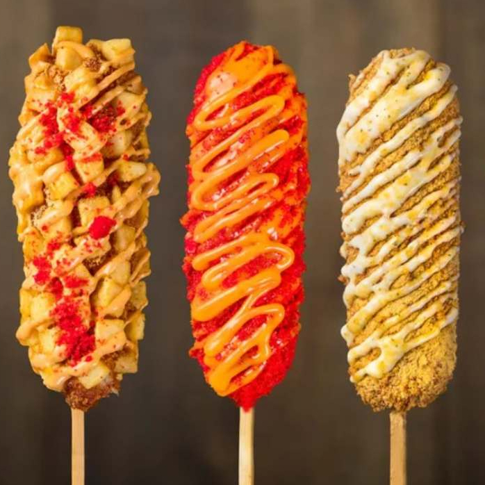 Deliciosa Banderilla de salchicha con queso manchego empanizada en ramen