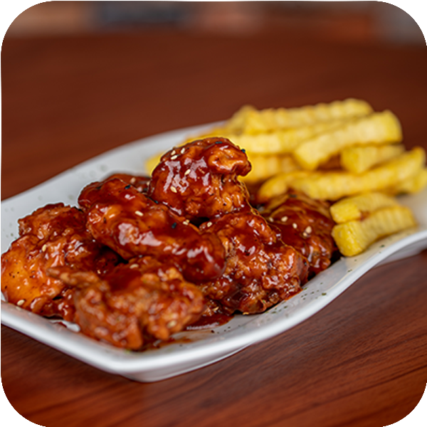 Orden de 5 piezas de alitas preparas con una deliciosa salsa de Mango - Habanero acompañadas de papas a la francesa