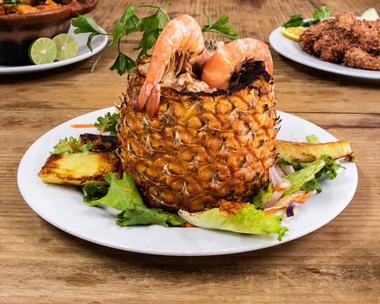 La empanada se prepara solo con el camarón coctelero, no lleva guiso.