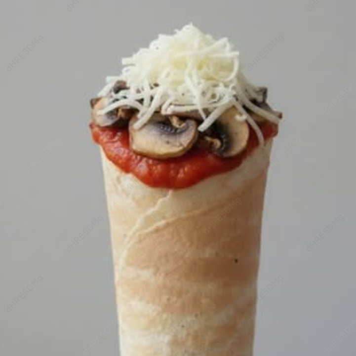 Peperami, champiñones, queso de bola y salsa BBQ o de tomate.