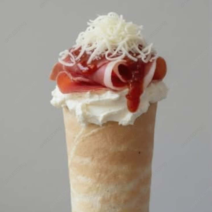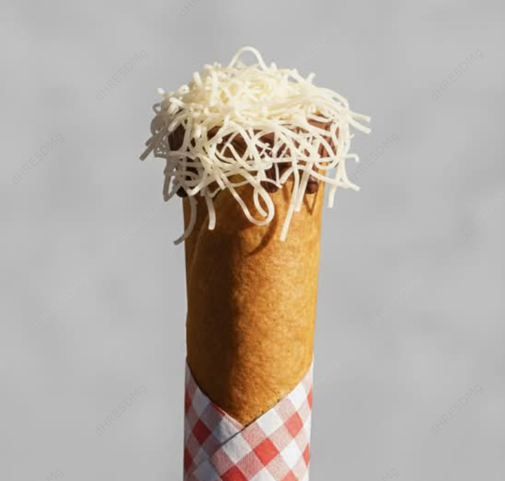 Peperami, queso Philadelphia, queso de bola y salsa de tomate.