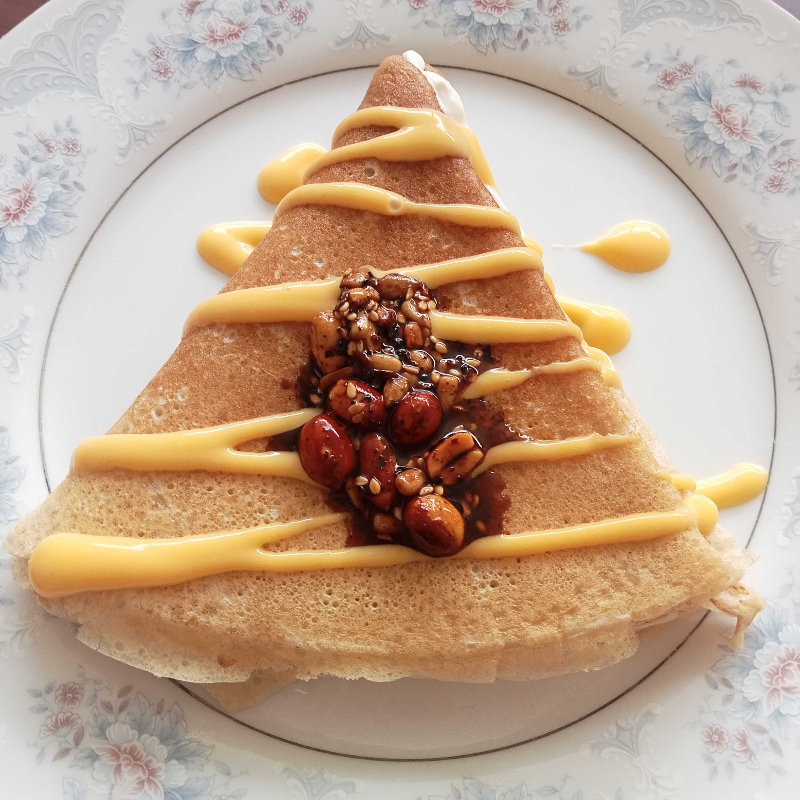 Por dentro Nutella,queso Philadelphia y plátano por fuera miel de maple o caramelo