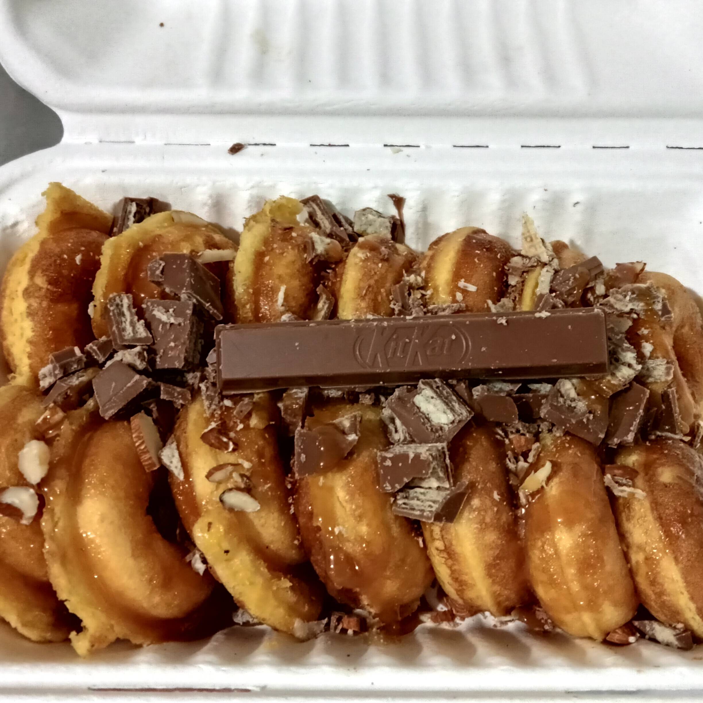 14 pzas de mini donitas con 3 toppings a elegir