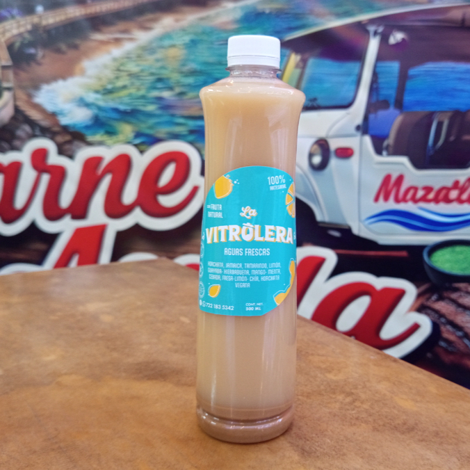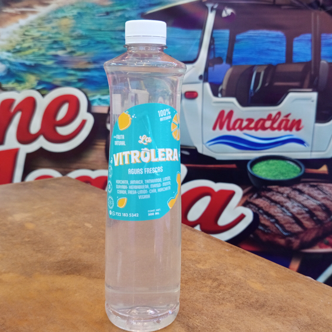 Agua embotellada marca vitrolera sabor horchata