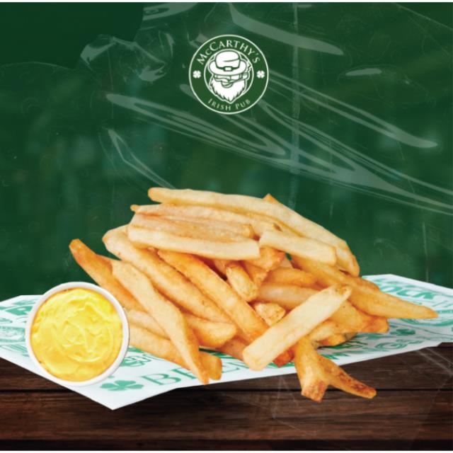 PAPAS A LA FRANCESA 350 GR. BAÑADAS EN QUESO CHEDDAR.