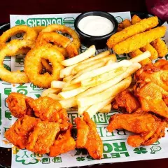 6 BONELESS, 6 ALITAS, 6 AROS DE CEBOLLA, 5 DEDOS DE QUESO Y PAPAS A LA FRANCESA CON ADEREZO BLUE CHEESE 2 OZ Y 2 SALSAS A ELECCION.