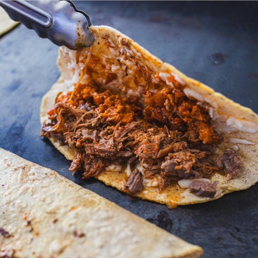 Deliciosa quesadilla hecha al momento, doradita y rellena de mucho sabor. Elige tu ingrediente favorito: chicharrón crujiente, queso fundido, rajas, chorizo, champiñones frescos o pollo. ¡Imposible comer solo una!