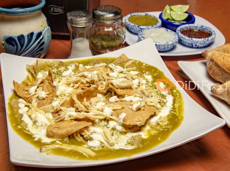 Chilaquiles con Queso, Crema y Pollo deshebrado*1 + Café de olla*1