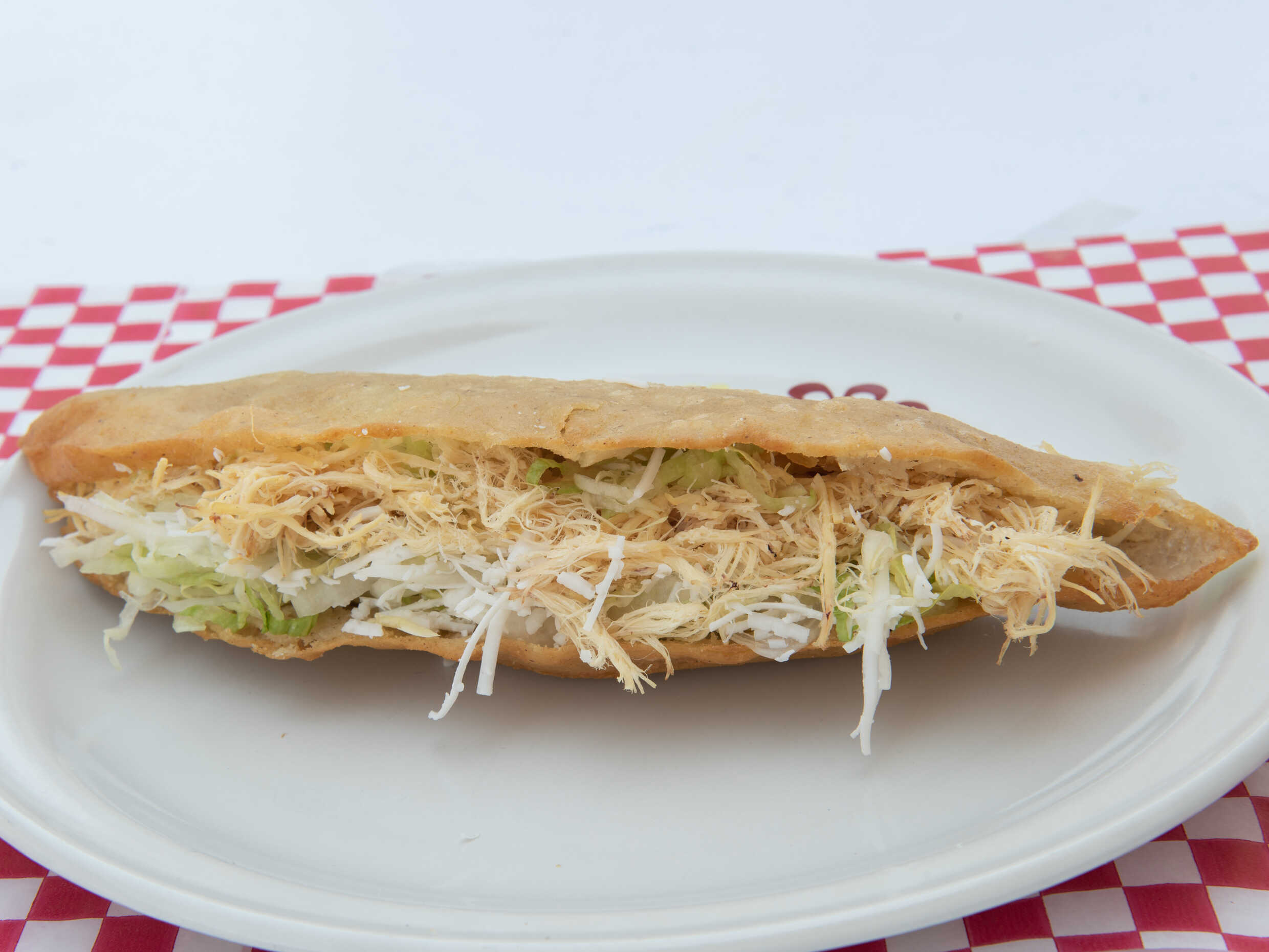 Por unidad ,pan blanco de salsa Guánica ,tinga de pollo ,lucha ,queso y crema