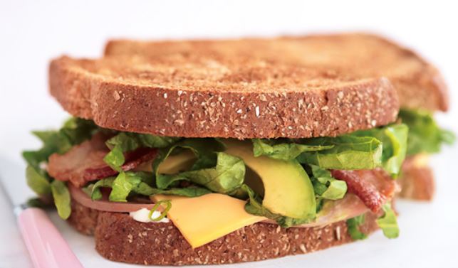Pan integral con ajonjolí, mayonesa, jitomate, aguacate
