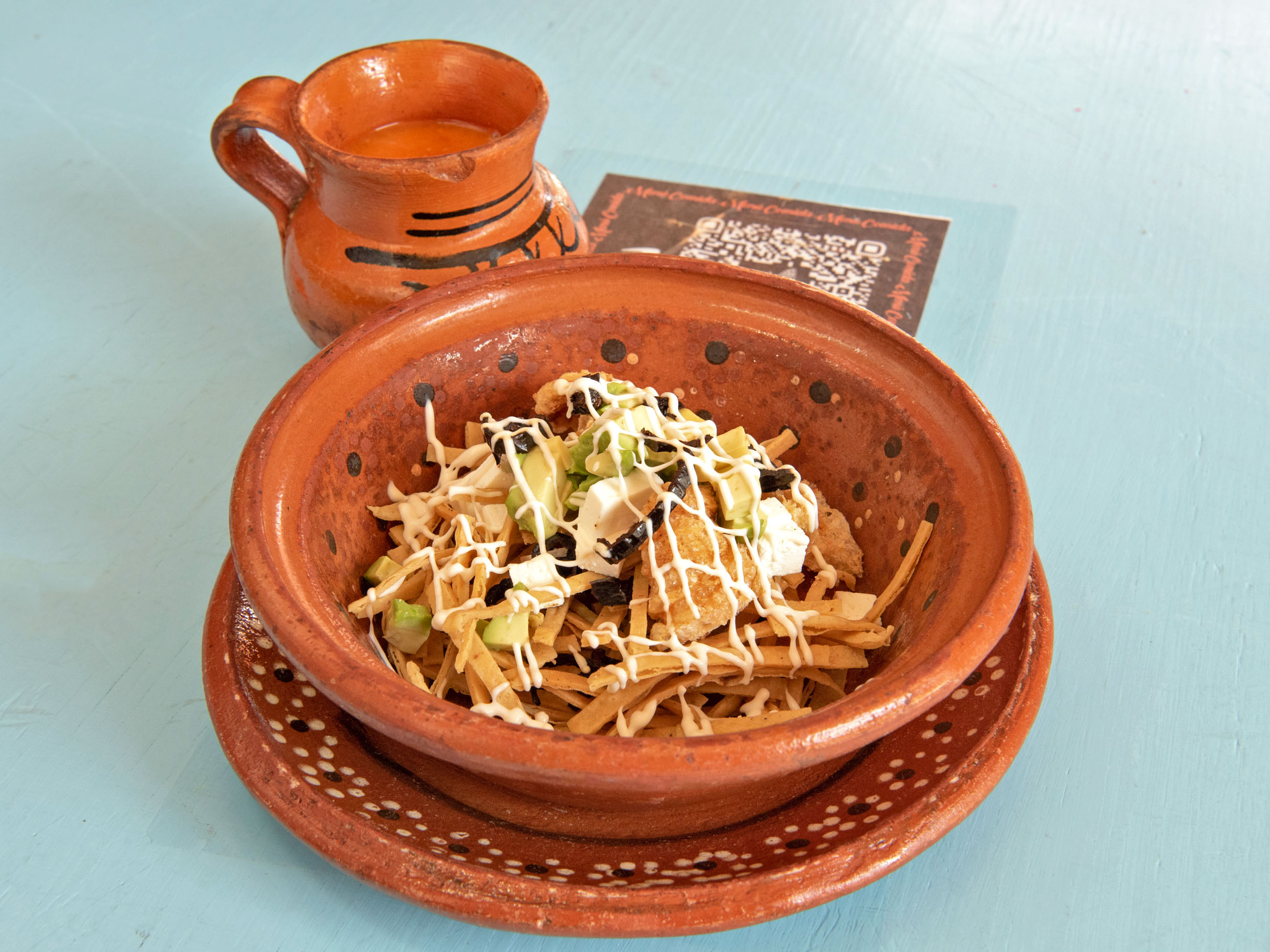 Incluye Plato de fruta chico, jugo o café + enmoladas rellenas de pollo.