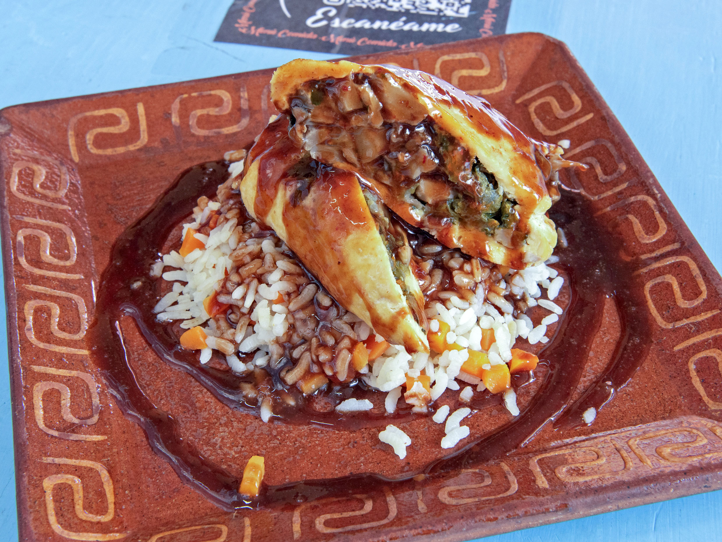 El orgullo de la casa. Rellenas de flor de calabaza y hongos bañada en salsa de tamarindo