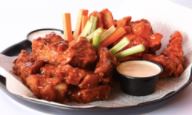 Suculentos trozos de pollo bañados en salsa a elegir, acompañadas con bastones de zanahoria y apio.