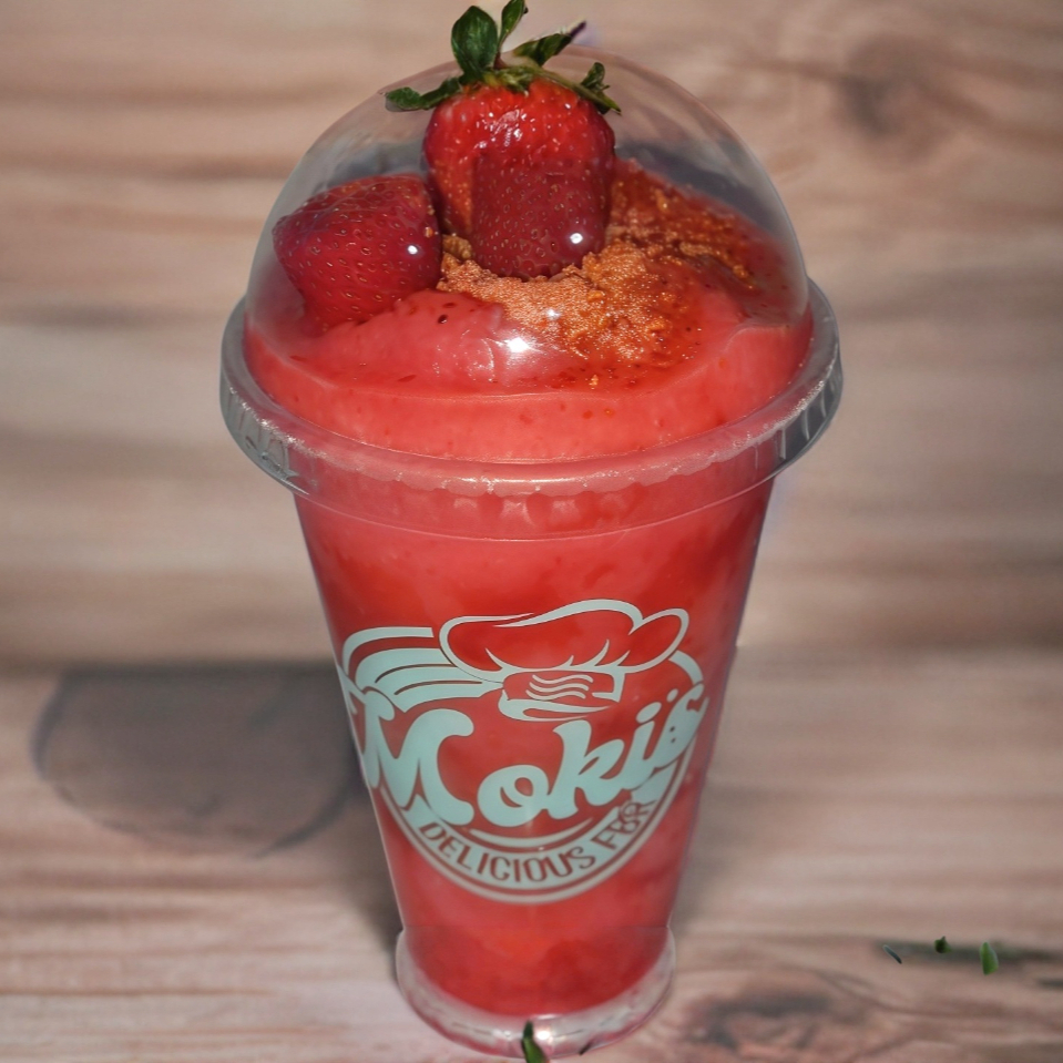 Base lechera, fresas y mango, decorado Hershey’s y helado sabor a elegir.