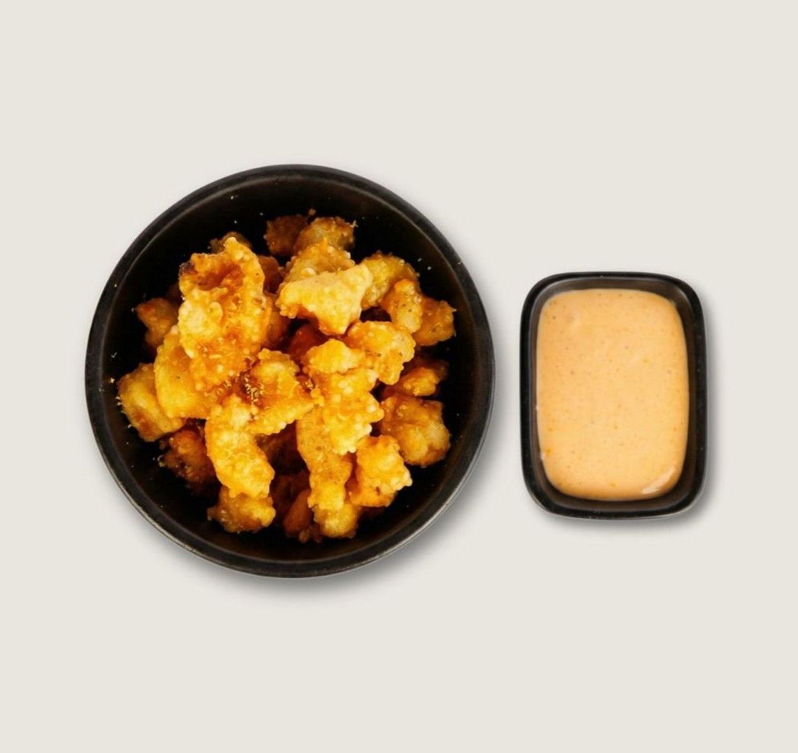 Camarones crujientes (100g) con aderezo rocca a base de sriracha