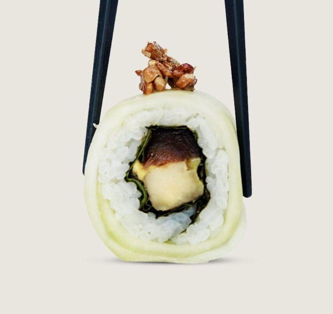 Aguacate | Anguila (20g), cangrejo (34g), pepino, queso Philadelphia, salsa de anguila y ajonjolí negro (8 pzas)