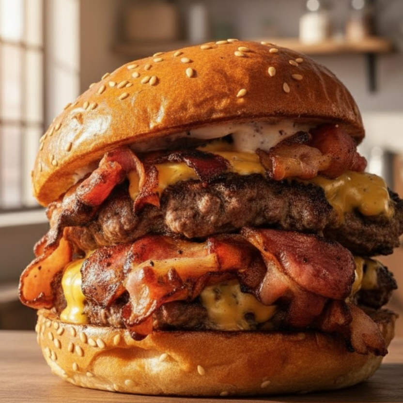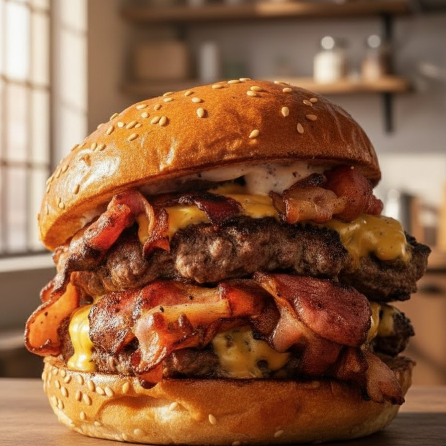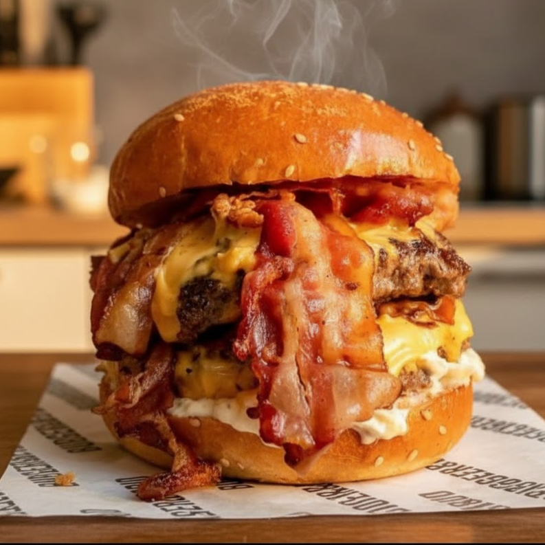 Atrévete a probar la Doble Smash Bacon, una obra maestra creada exclusivamente para los que no se conforman. lechuga, jitomate, cebolla y aderezo Dos jugosas carnes selladas al fuego, tocino crujiente en capas, queso fundido que se derrite al contacto y un pan doradito con textura perfecta. Cada mordida es una explosión de sabor ahumado, cremoso y salado que solo encontrarás a través de DiDi Food.