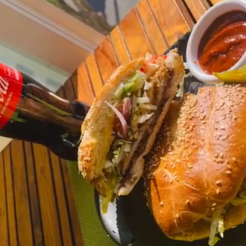 Deliciosa MEGA TORTA en pan de 20cm acompañada de mayonesa, frijoles, lechuga, jitomate, cebolla, aguacate y proteína a elegir: Milanesa de Cerdo o Milanesa de Pollo