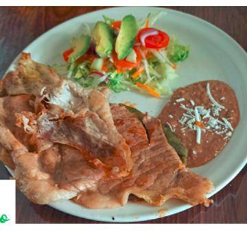 Porción de 150 grs de cecina natural asada a la plancha + porción de ensalada de lechuga + rallado de zanahoria + rallado de jicama