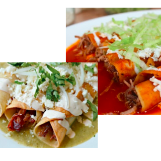 Enchiladas en nuestra deliciosa salsa verde o roja o mixta