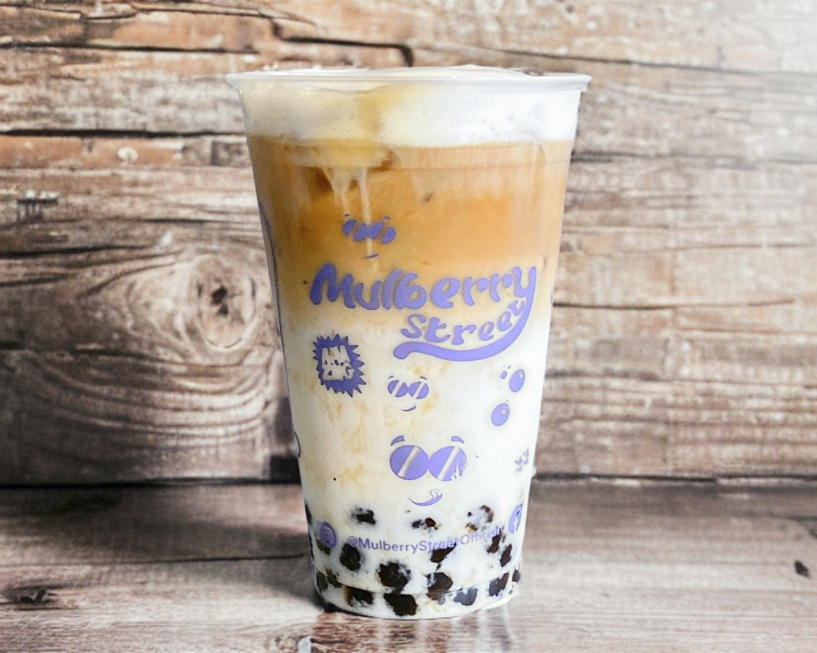 Boba a base de leche sabor azúcar morena con un toque de canela, café y tapioca