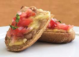 Frijoles, queso manchego, jamón de pavo, pico de gallo.