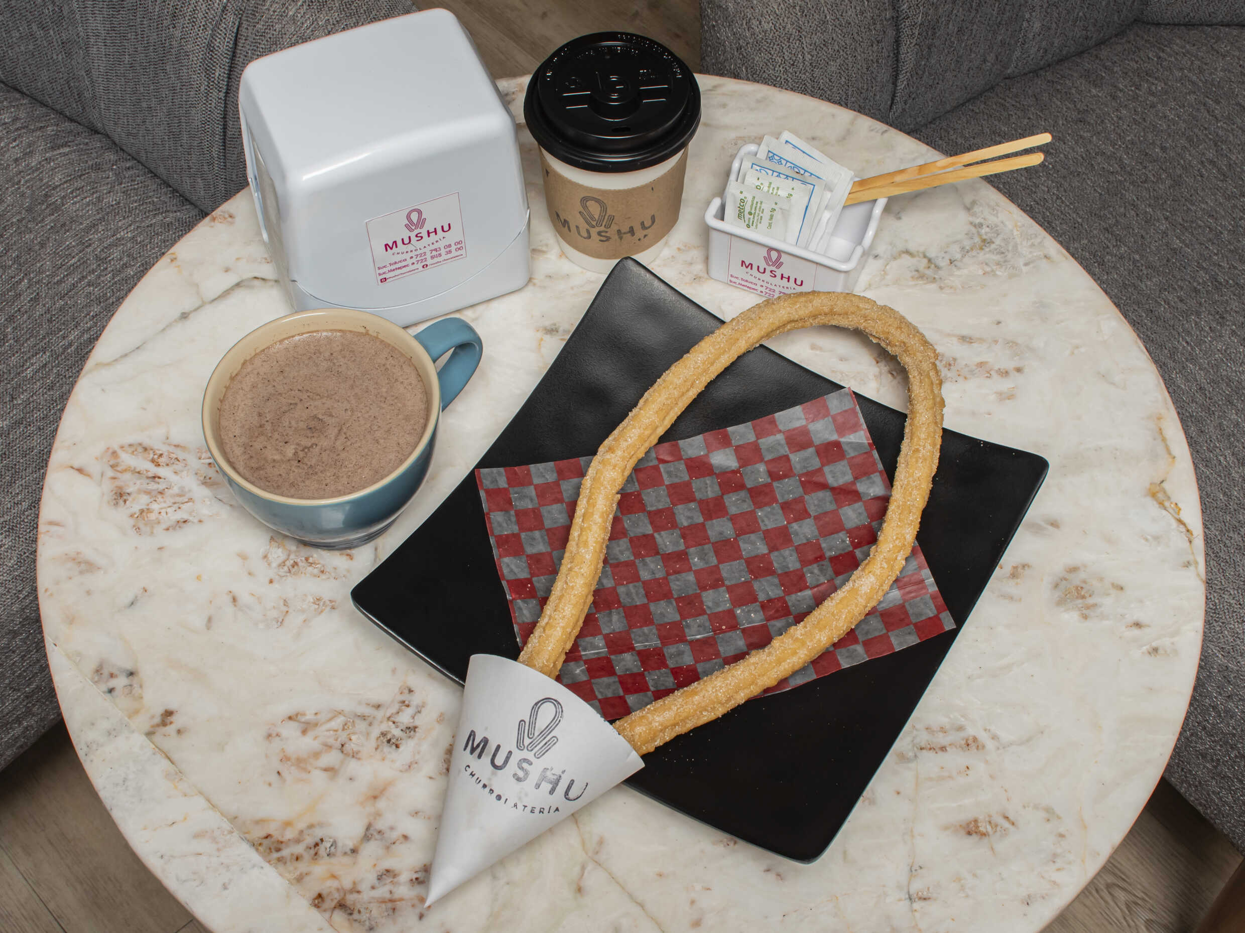 1 Litro de Chocolate, 2 Mushu Churro Especial y 2 O. Churros