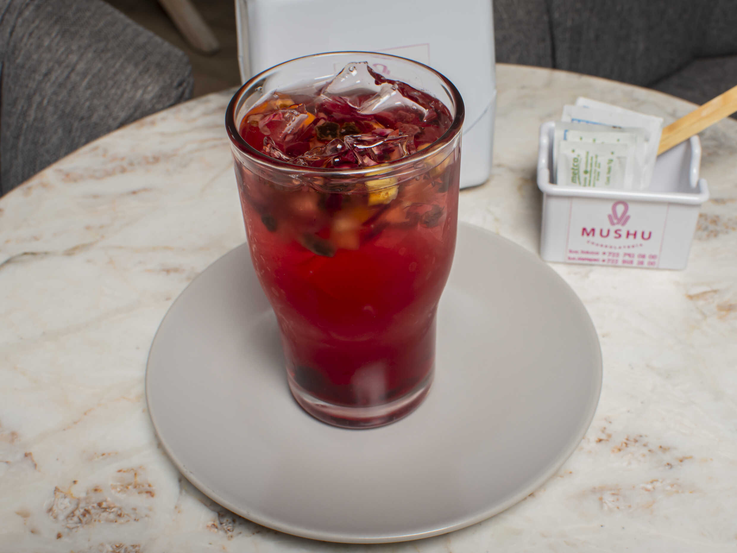 16 onzas. Refrescante mezcla de frutos rojos, con helado de vainilla y jellys sabor litchi.