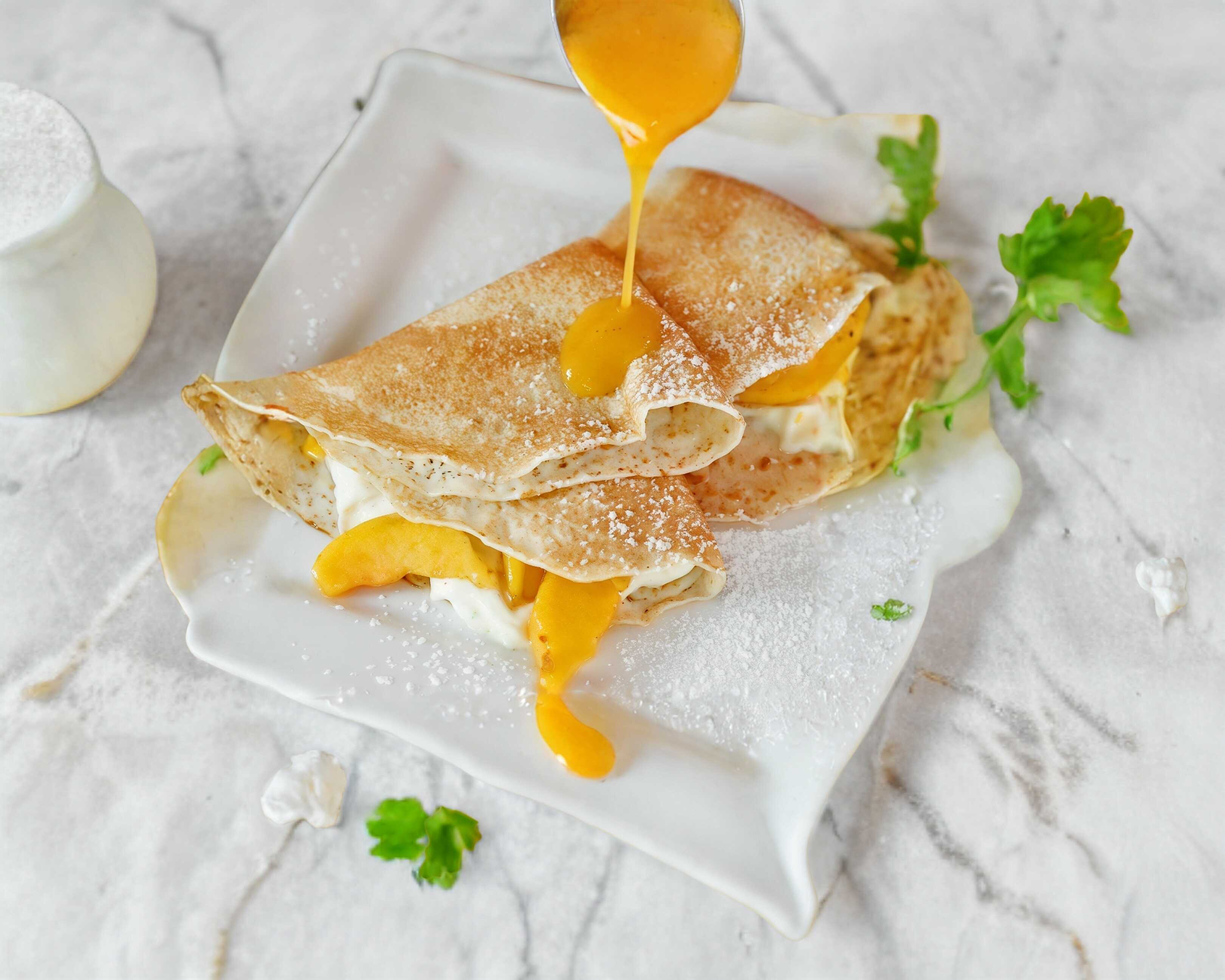 Deliciosa crepa de Nutella, queso Philadelphia y durazno.