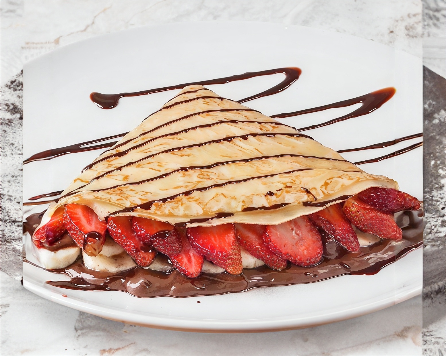 Deliciosa crepa de queso Philadelphia, Nutella y fresas.