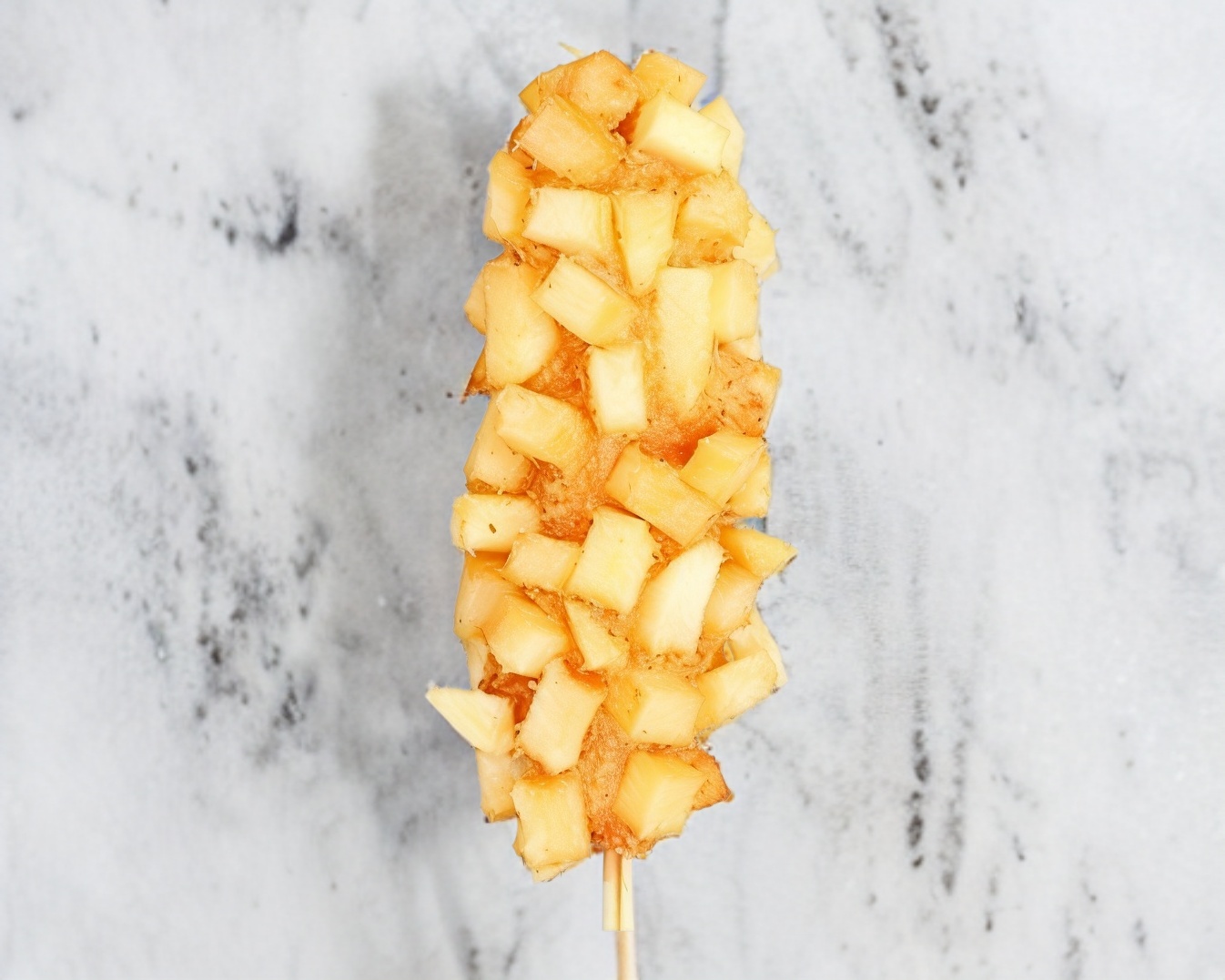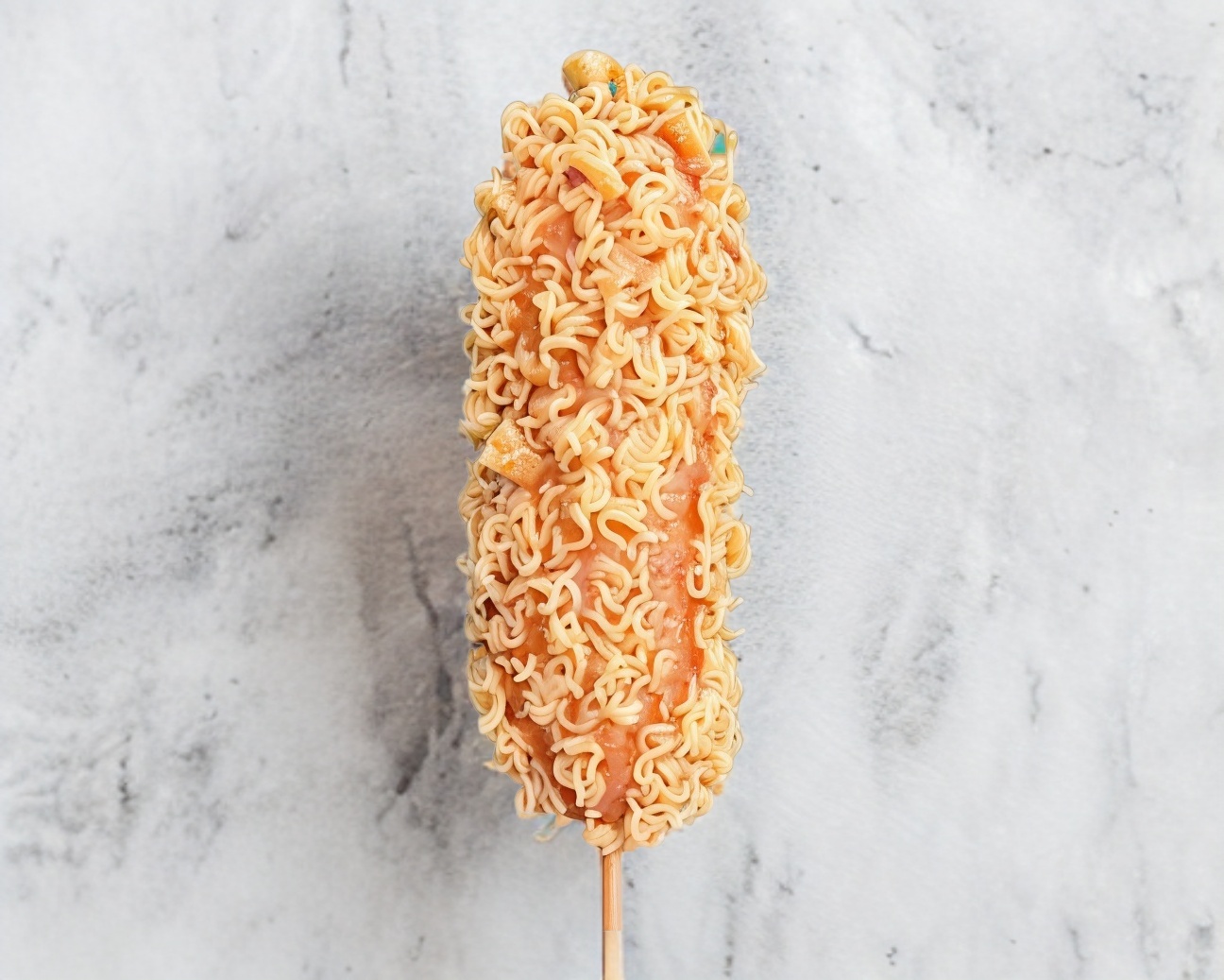 Banderilla Coreana rellena de queso Mozzarella y Salchicha empanizada con Panko