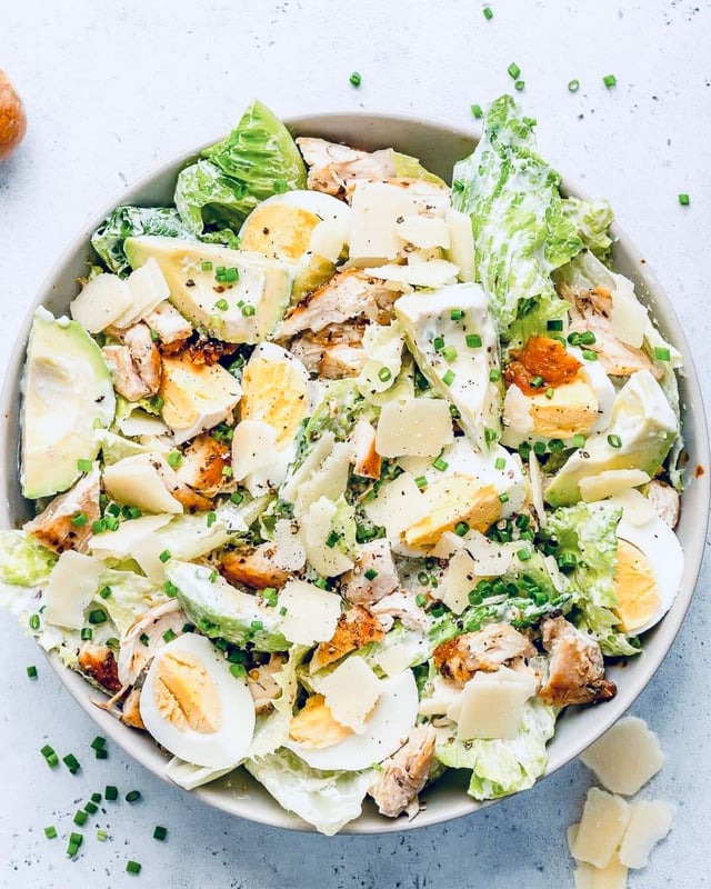 Pechuga de pollo(50Gr), aguacate, granos de elote, zanahoria rallada, Jitomate cherry, Brocoli, aceite de oliva