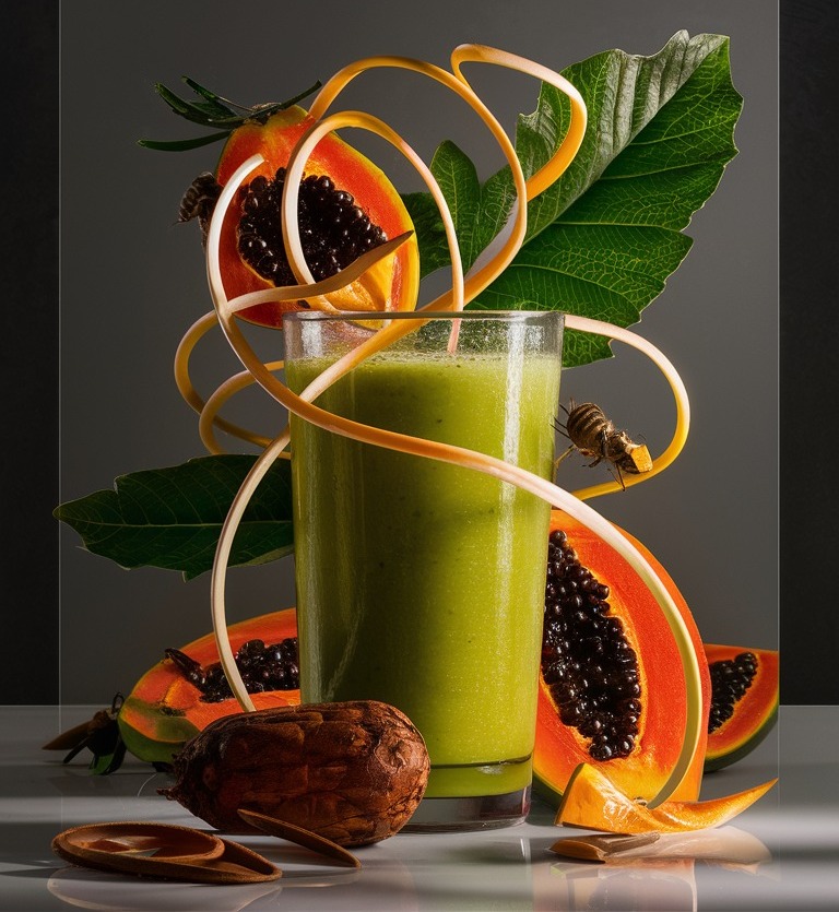 2 rebanadas de papaya, 1 puño de semillas de papaya, jugo de 1 limón, 1/2 taza de agua.