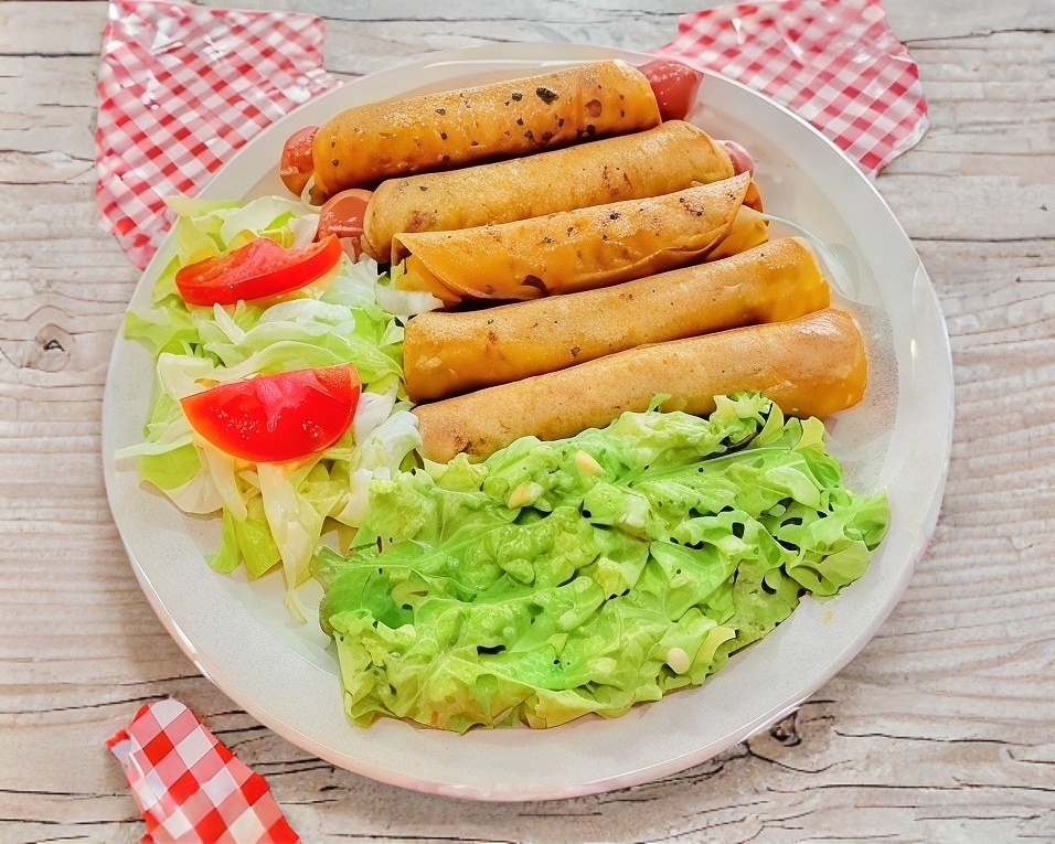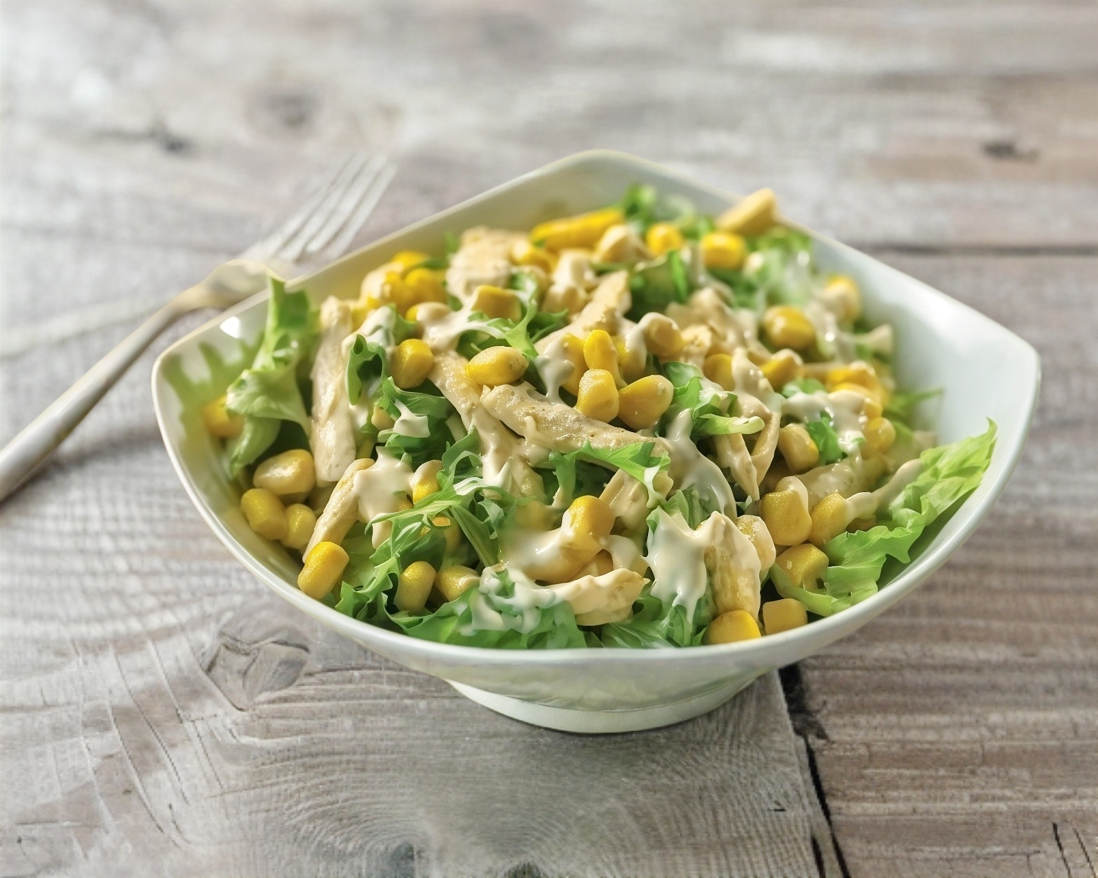 Queso crema light, granos de amarillo, lechuga, pechuga de pollo y sal con cebolla en polvo