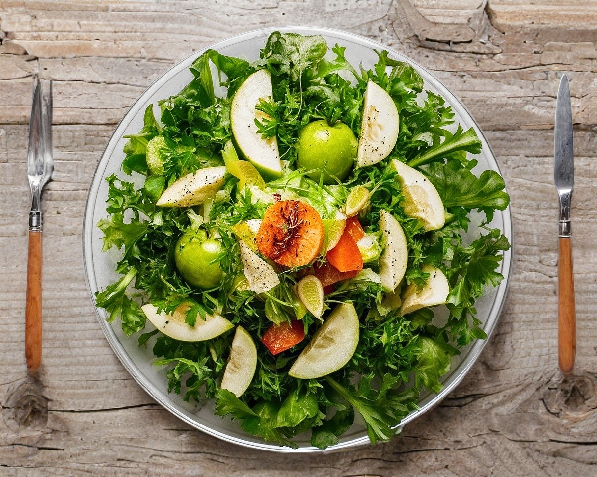 Lechuga, manzana verde, zanahoria, crema de leche y mayonesa.