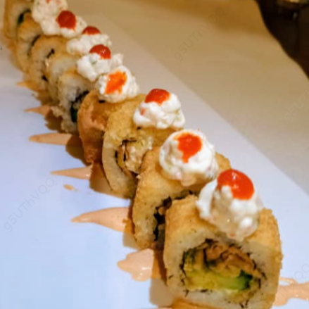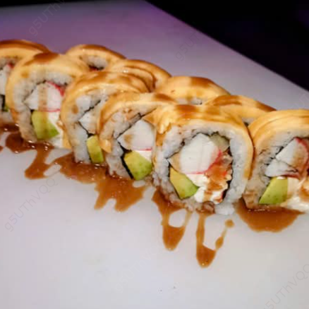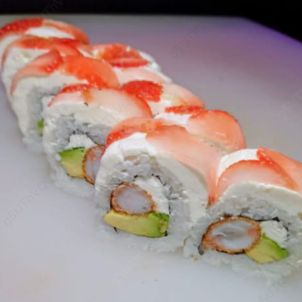 Envuelto con queso Philadelphia y fresa, bañado con salsa dulce, relleno de aguacate y camarón empanizado.