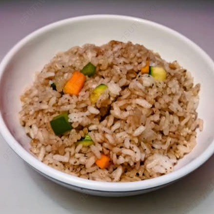 Arroz frito con verduras zanahoria, morrón, calabaza y cebolla.