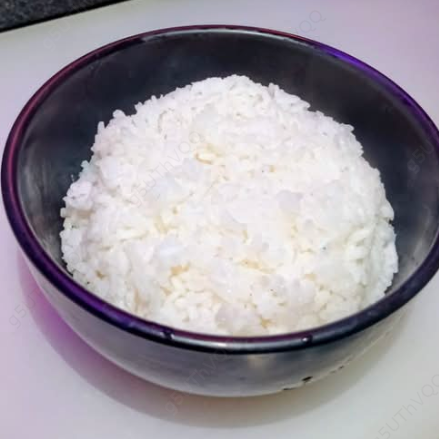 Porción de arroz blanco cocido al vapor de textura suave.