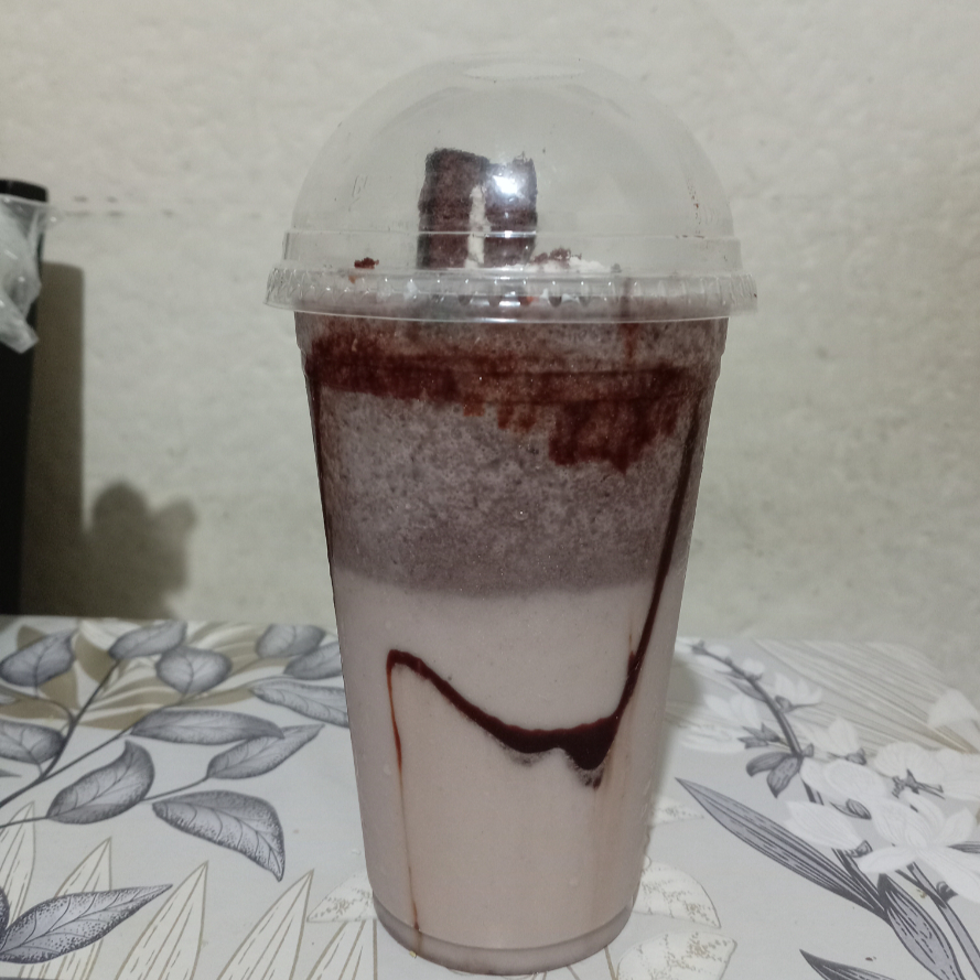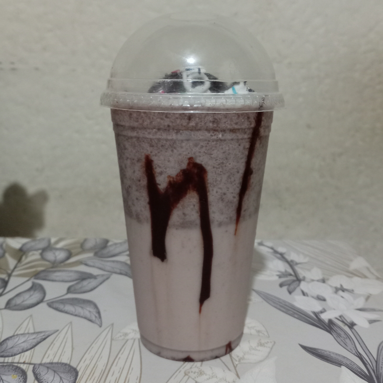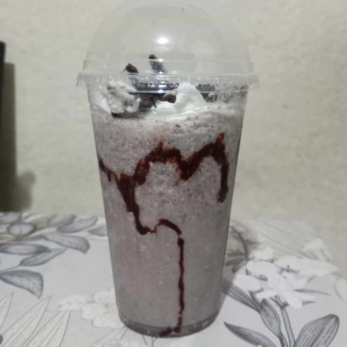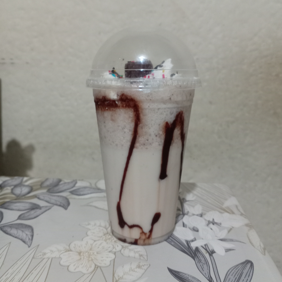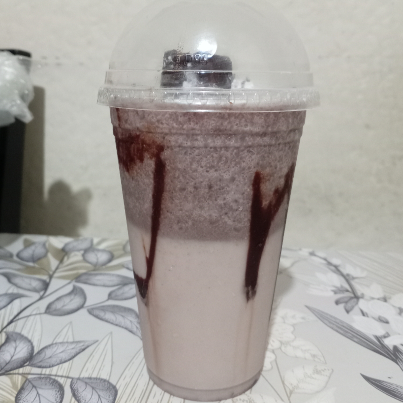 Lleva leche hielo galleta oreo chocolate Hershey's liquido y chantillin se agrega a la licuadora el hielo la leche la galleta oreo azúcar vainilla se licua y se sirve en un bazo decorado con chocolate Hershey's líquido y chochitos de colores y galleta oreo