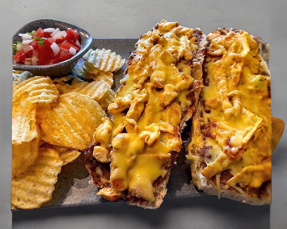 2 pzas de mollete con nuestro baguette hecho en casa, incluye pico de gallo y acompañados con papitas.