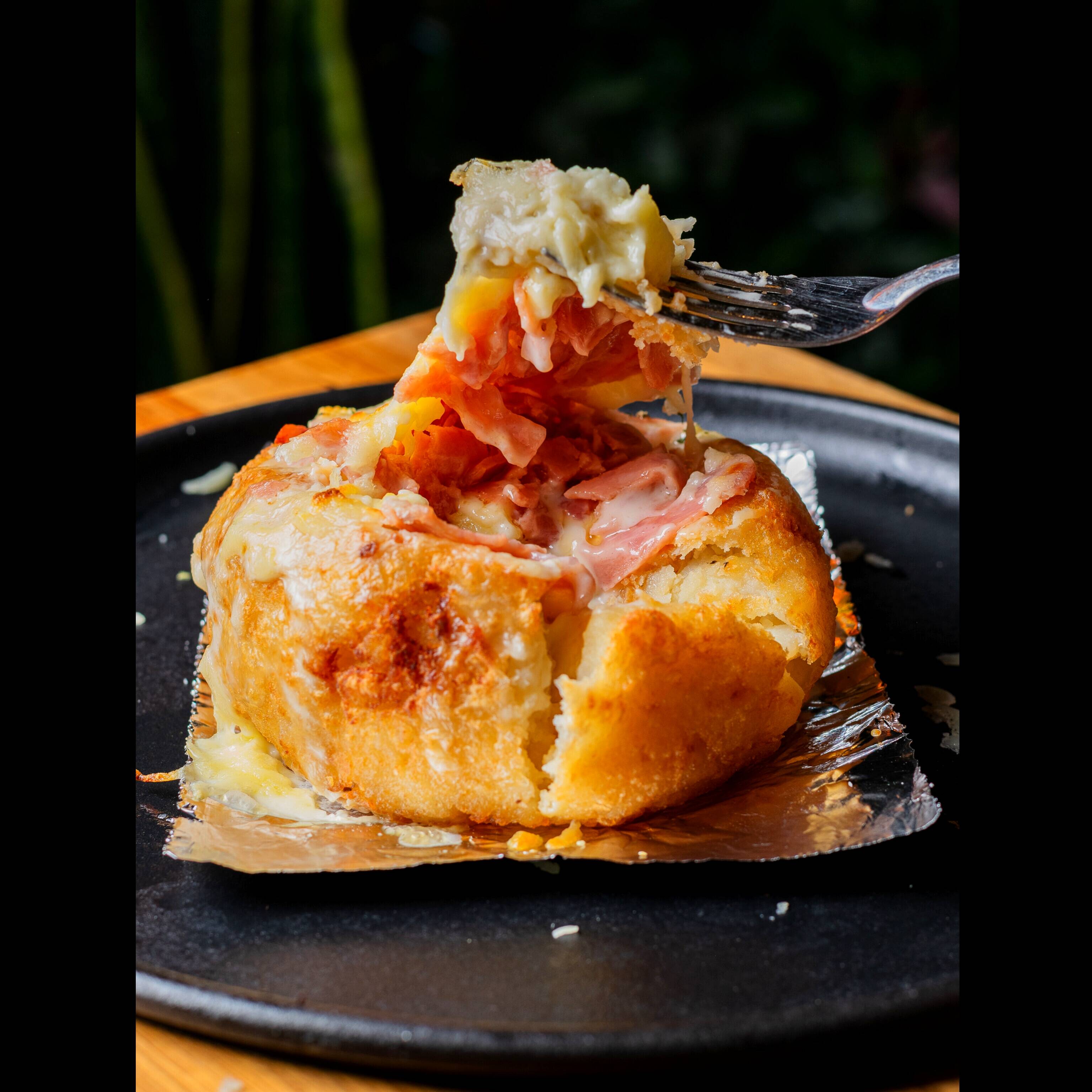 Papa al Horno Rellena de tocino y Queso 400 g*1 + Refrescos*1